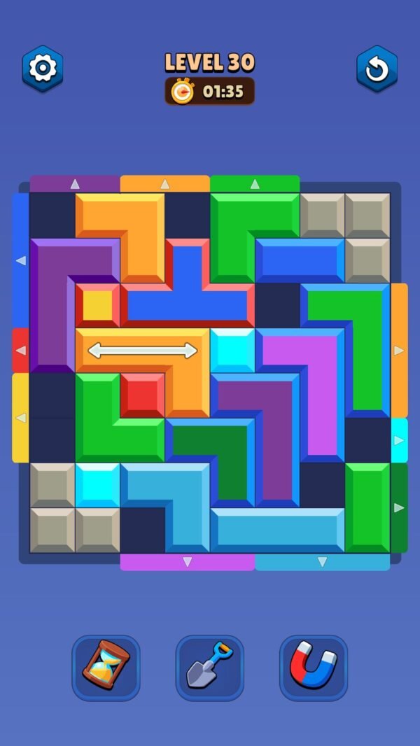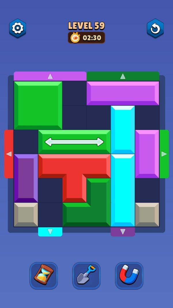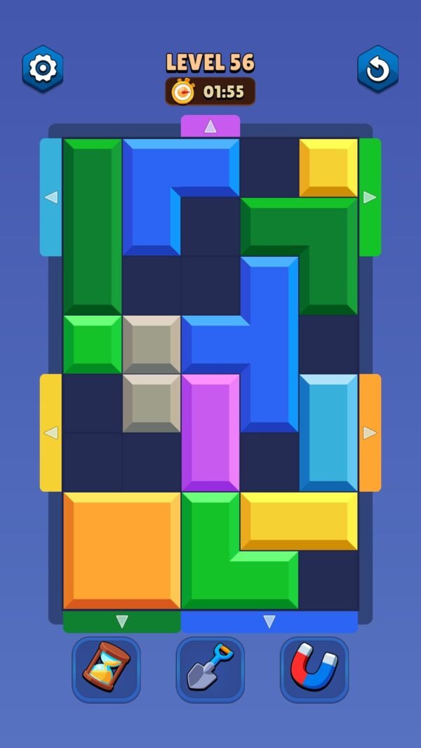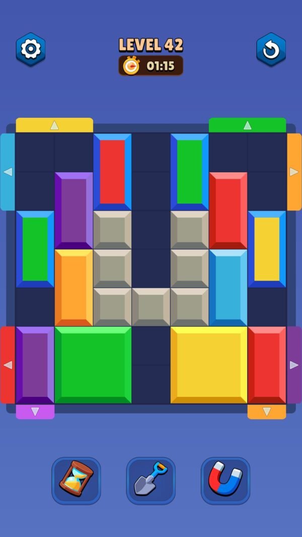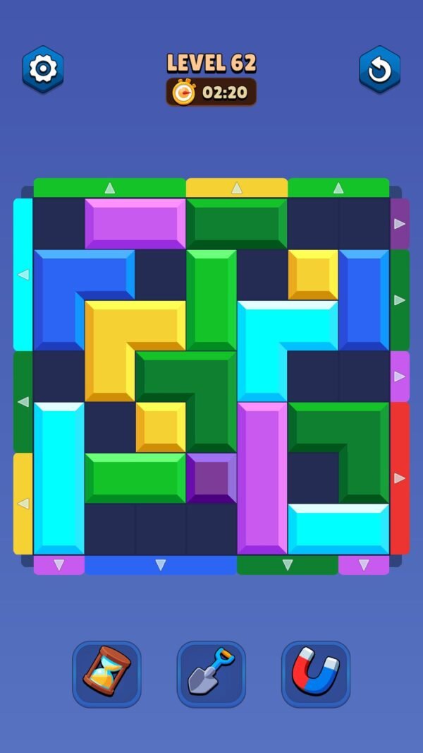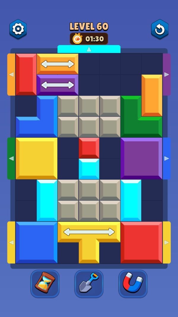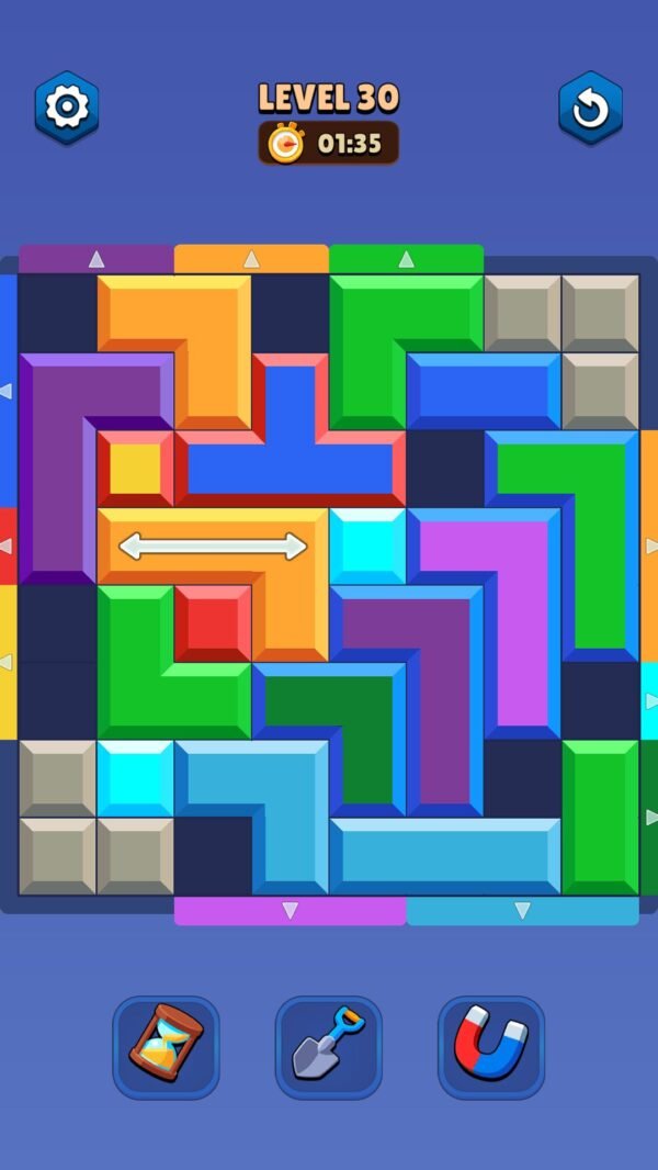 Simple Goal: Move the color blocks to their matching gates, but with a twist! As you progress, the puzzles become more challenging, testing your quick thinking and strategic moves.