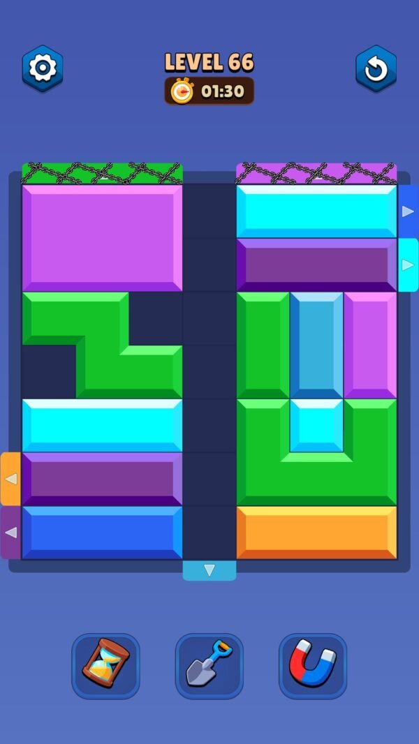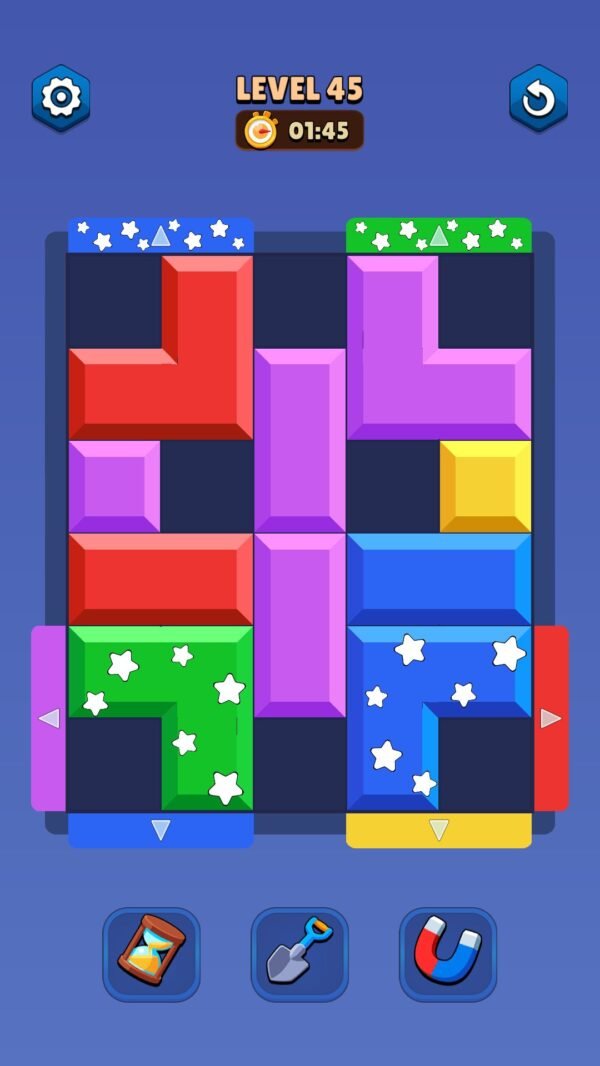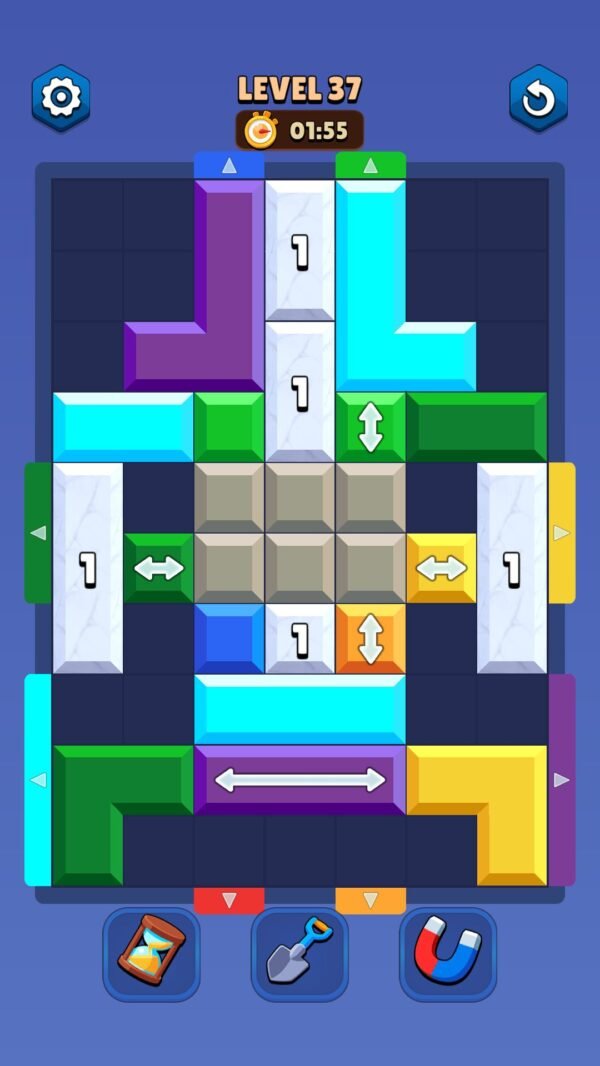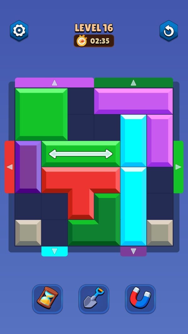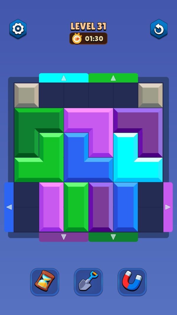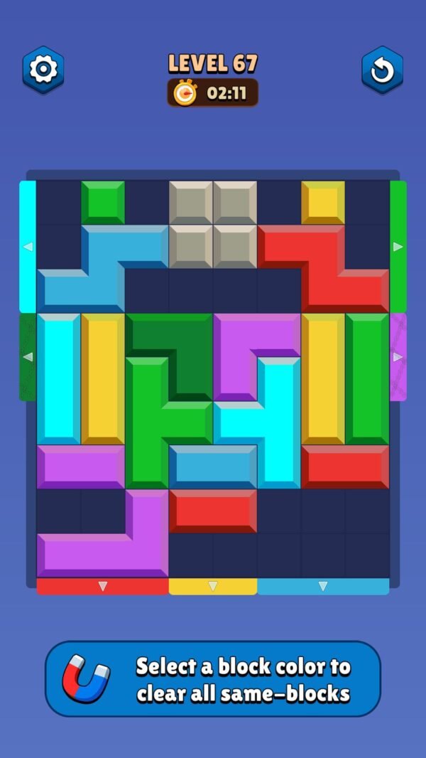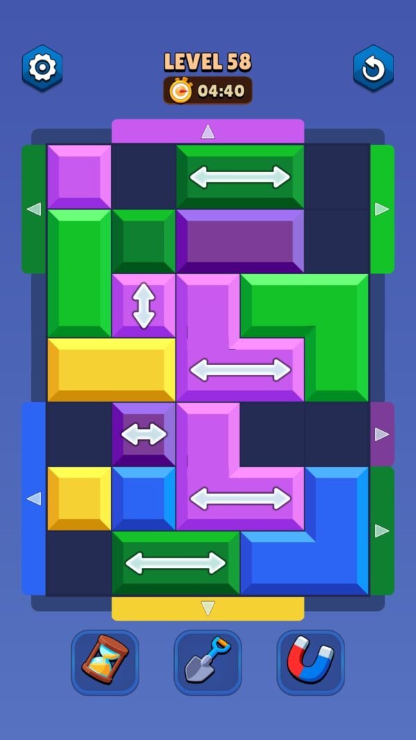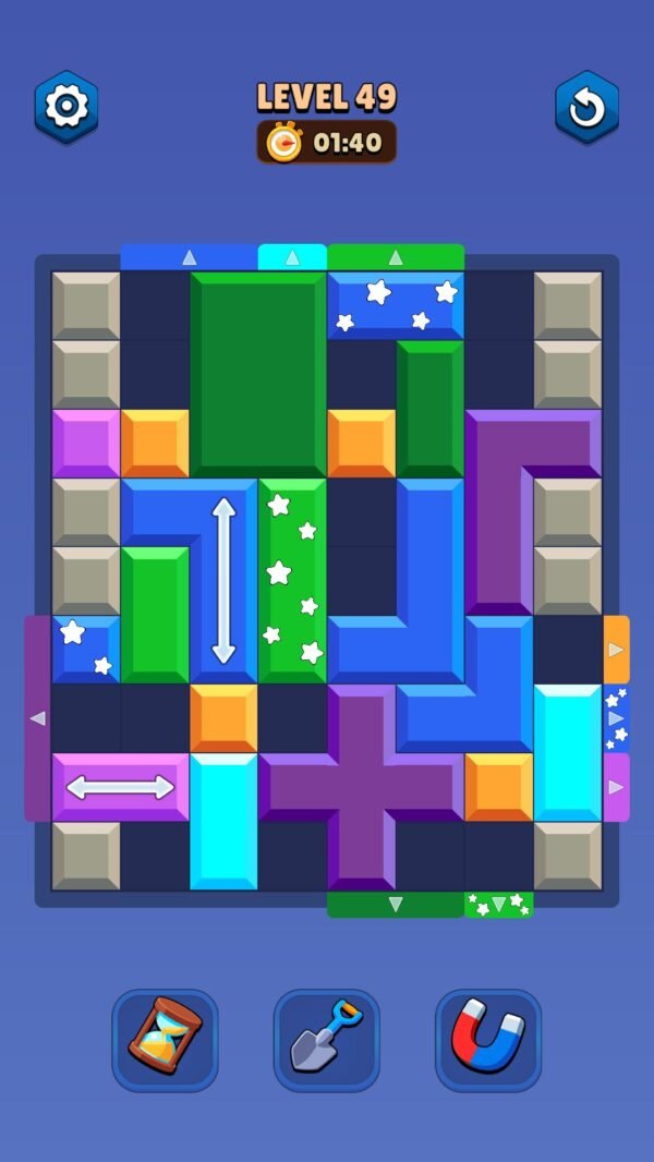 Simple Goal: Move the color blocks to their matching gates, but with a twist! As you progress, the puzzles become more challenging, testing your quick thinking and strategic moves.