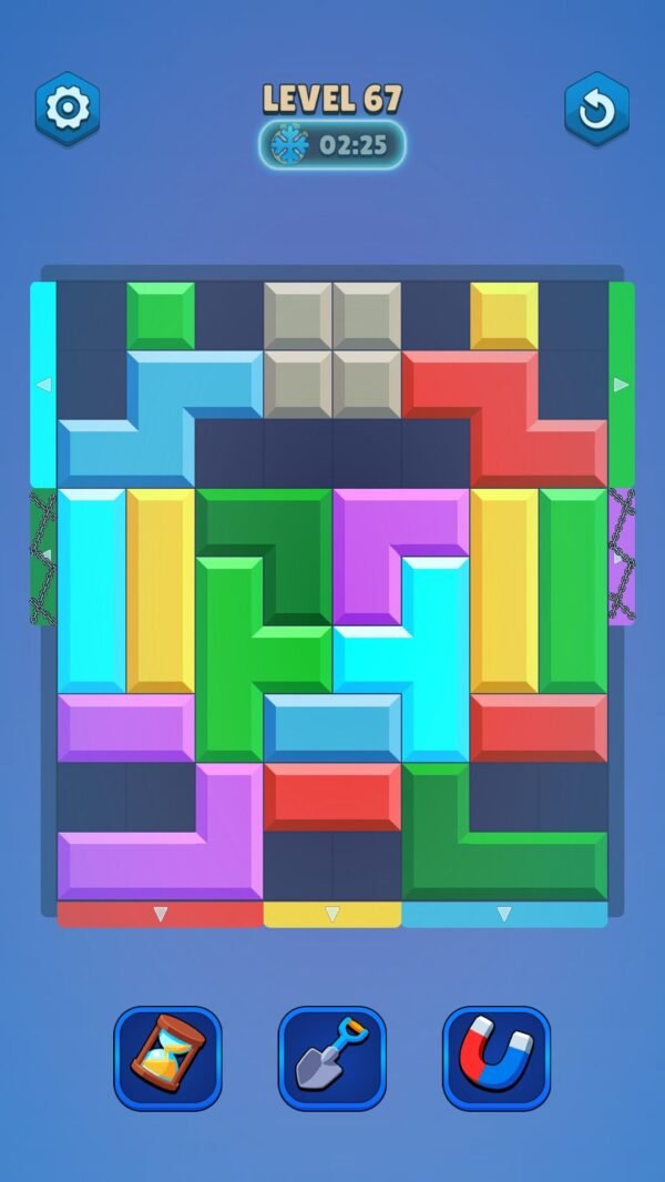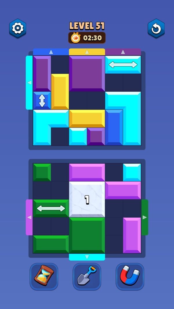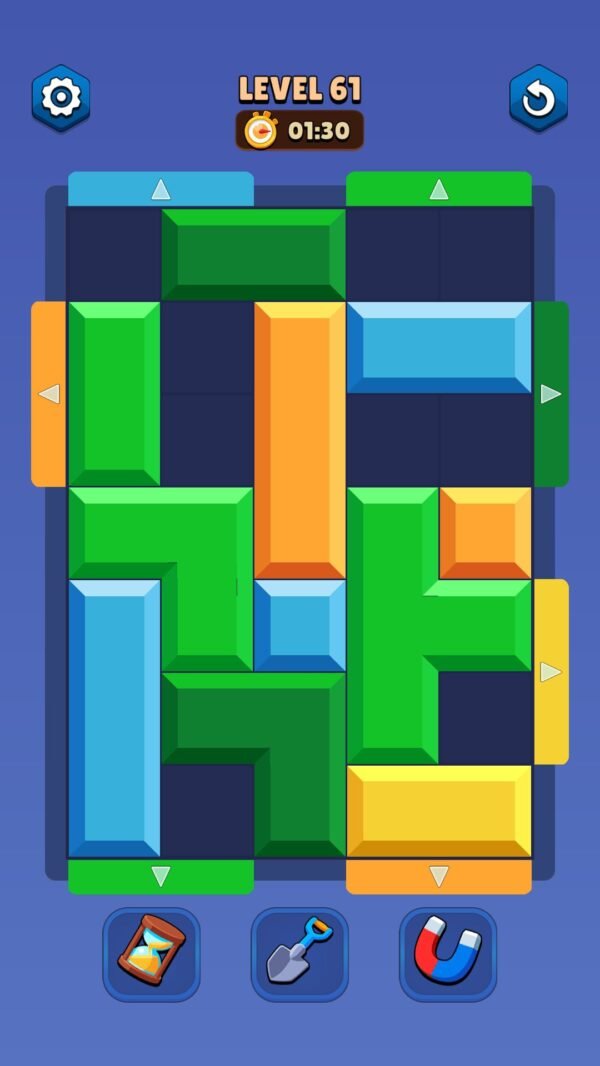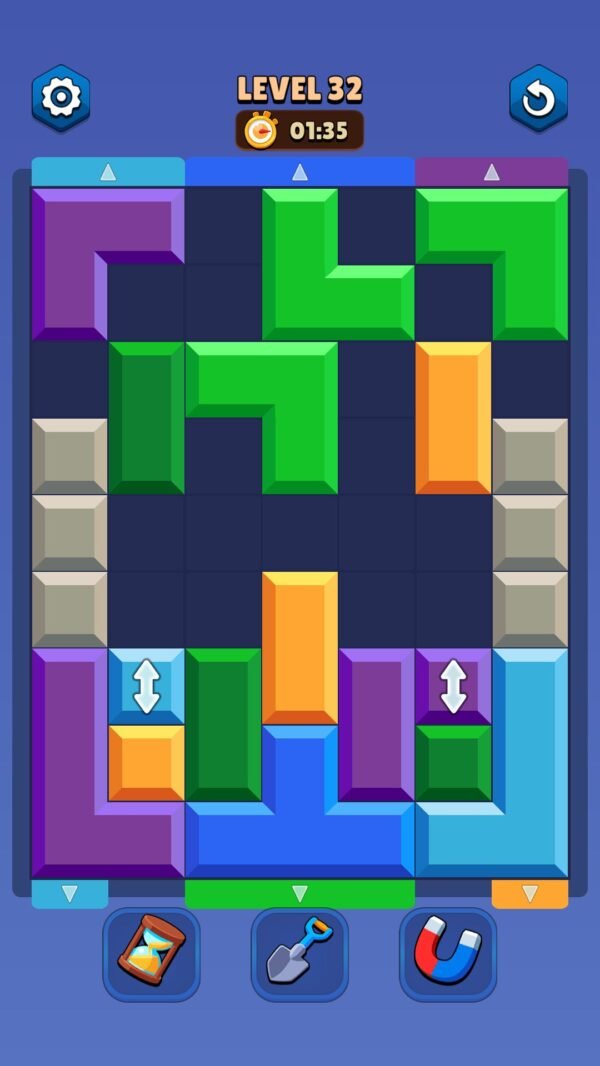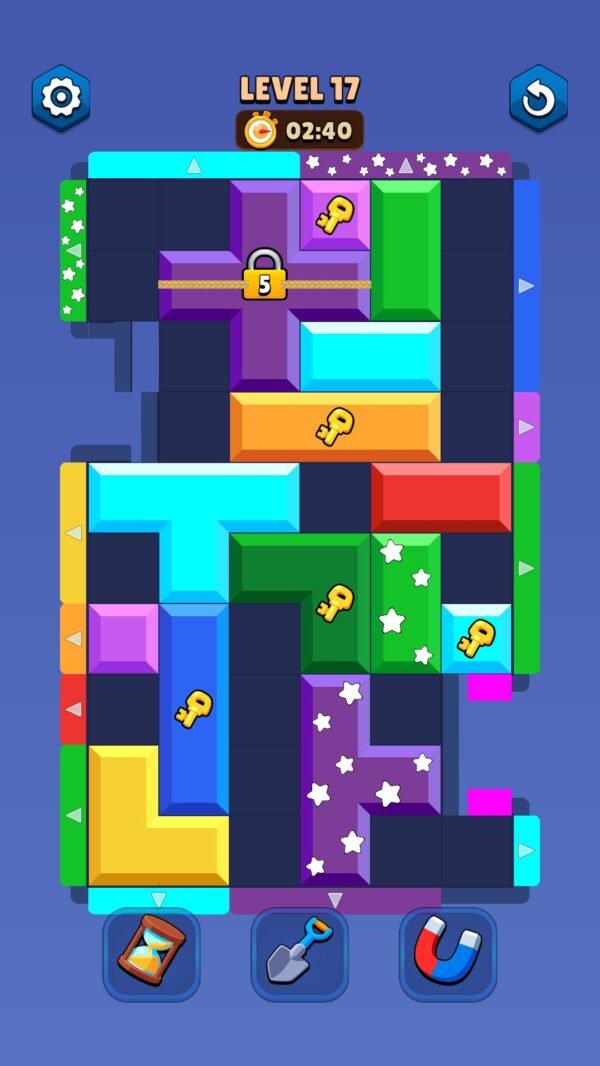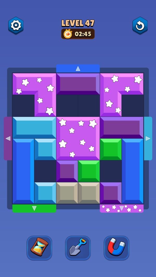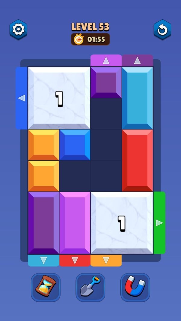 Simple Goal: Move the color blocks to their matching gates, but with a twist! As you progress, the puzzles become more challenging, testing your quick thinking and strategic moves.