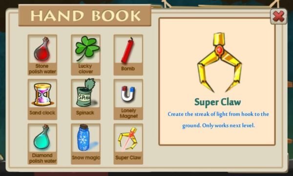 – Bomb: After you’ve grabbed onto something with your claw, press the up key to throw a piece of dynamite at it to blow it up.