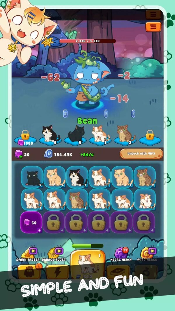 Idle Kitty 🐾 is a fun, relaxing, addictive cat collector and merge game! With over 58+ adorable fluffy cats 🐱, it’s the perfect game for cat lovers!