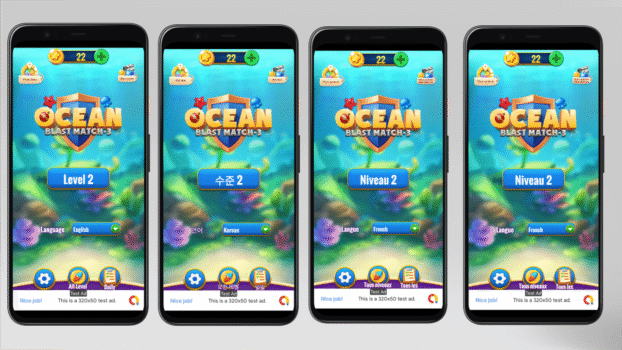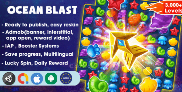 Ocean Blast is trending Match 3 game on Google Play and App Store. This game helps you reduce time to build a similar game. You do not need to know any programming language to configure and use it. It is very easy to fill it with your own tasks, make UI changes,change your Admod, Unity ads ID start to gain experience in promoting your game and earning money. We will support you until you feel the most satisfaction for this asset.