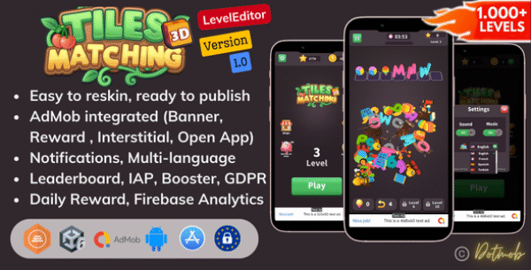 Triple Matching 3D is trending game puzzle game on Google Play and App Store .This game helps you reduce time to build a similar game easy. You do not need to know any programming language to configure and use it. It is very easy to fill it with your own tasks, make UI changes,change your Admod, Unity, IronSource ID start to gain experience in promoting your game and earning money. We will support you until you feel the most satisfaction for this asset.