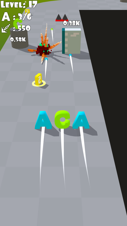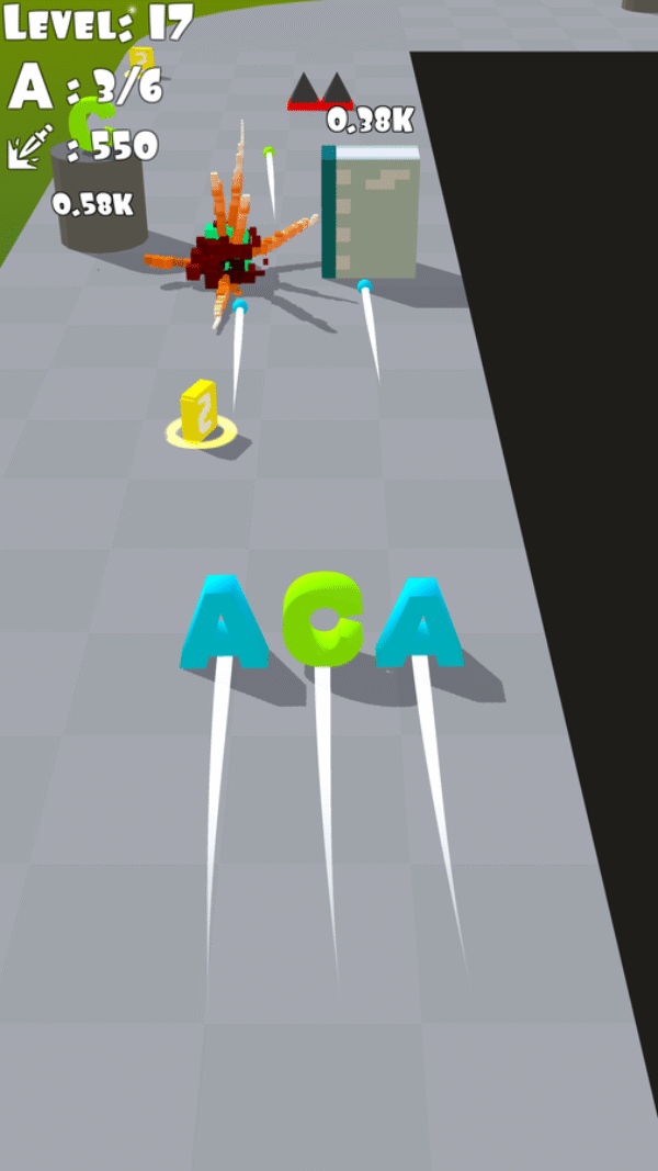 Letter Attack is an exciting endless level-base game in which you hold your finger on the screen and swipe left or right to control the snake-like letters moving on the path. The goal is to shoot down the target and collect the letters on the path and merge them into a new letter. Each letter has different power and letter that lower on the alphabet will have more power than the previous one. You can also collect coins to unlocks new letters for higher power, collect magnet to attract coins, collect shield to protect the player from deadly obstacles. At the end of the path, you must shoot down all the enemies in order to complete the level. The game is ready to release straight out of the box, and it can also be easily customized to make it even more engaging to your players. Supports for PC/Mac, iOS, Android, etc…!