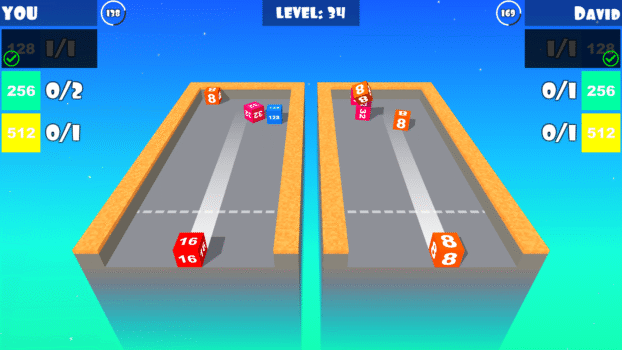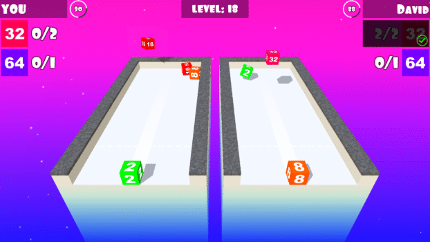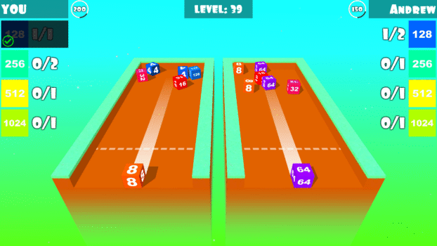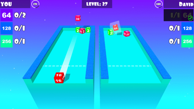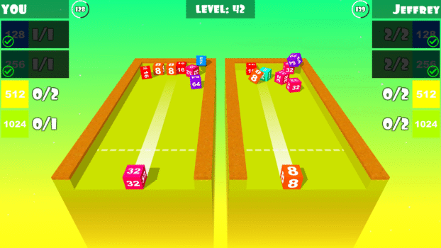 Merge Cube is an exciting endless level-base game in which you touch on the screen to control the cube at the bottom of the table. Tap again to force the cube forward or swipe up to fly the cube. The goal is to merge two same cubes to create higher cube and complete the target. You also need complete all the targets before the time run out and must keep your eyes on the enemy and not letting them complete their targets faster than you and complete the level.