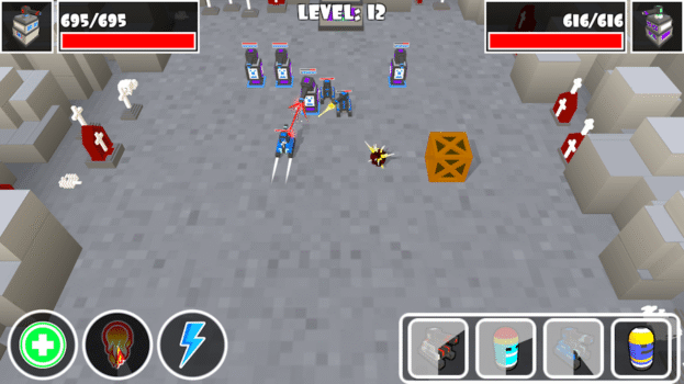– The total of 63 enemies with scriptable objects (hand gun, rifle, machine gun, shotgun, rocket, gatling gun, flamethrower, tank vehicle, drone vehicle, rocket vehicle, nuclear vehicle)