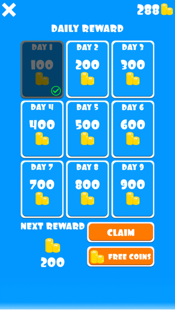 – 9 days daily reward system for better retention